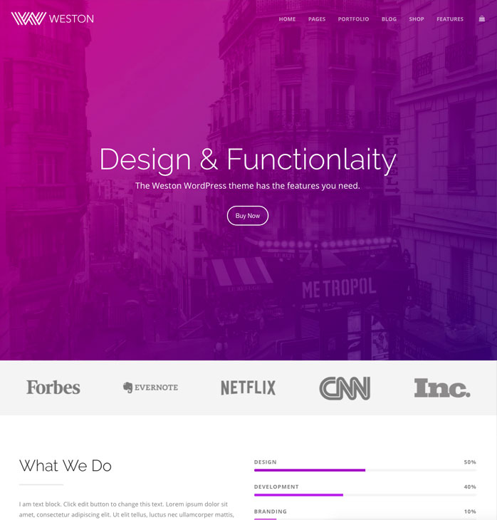 Weston is fully compatible with Woocommerce. Setup your online shop in no time with powerful e-commerce features and sleek styling.